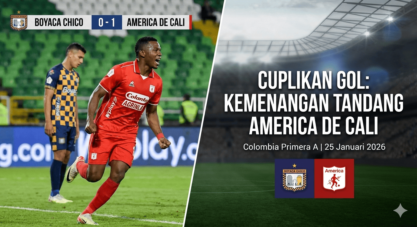 Cuplikan gol Boyaca Chico vs America de Cali pada 25 Januari 2026 menampilkan kemenangan penting America de Cali dengan skor 0-1. Satu gol tunggal, penguasaan bola yang dominan, dan pertahanan solid menjadi kunci kemenangan tim tamu di Colombia Primera A. Hasil ini semakin memperkuat posisi America de Cali sebagai salah satu kontestan serius untuk gelar juara.