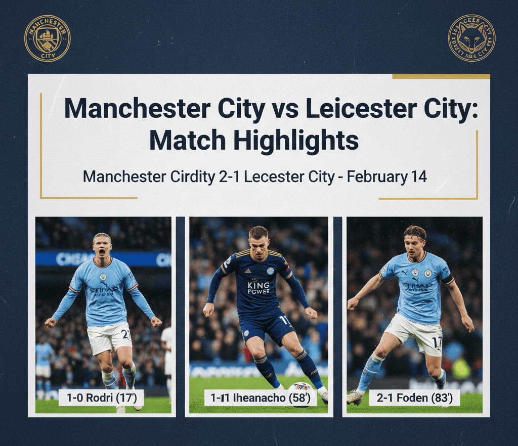 Satuskor.com – Cuplikan gol Manchester City vs Leicester City pada laga Premier League tanggal 14 Februari 2026 berakhir dengan kemenangan Manchester City 2-1. Tuan rumah membalikkan keadaan lewat dua gol penting di babak kedua setelah tertinggal lebih dulu dari Leicester City. 🔥