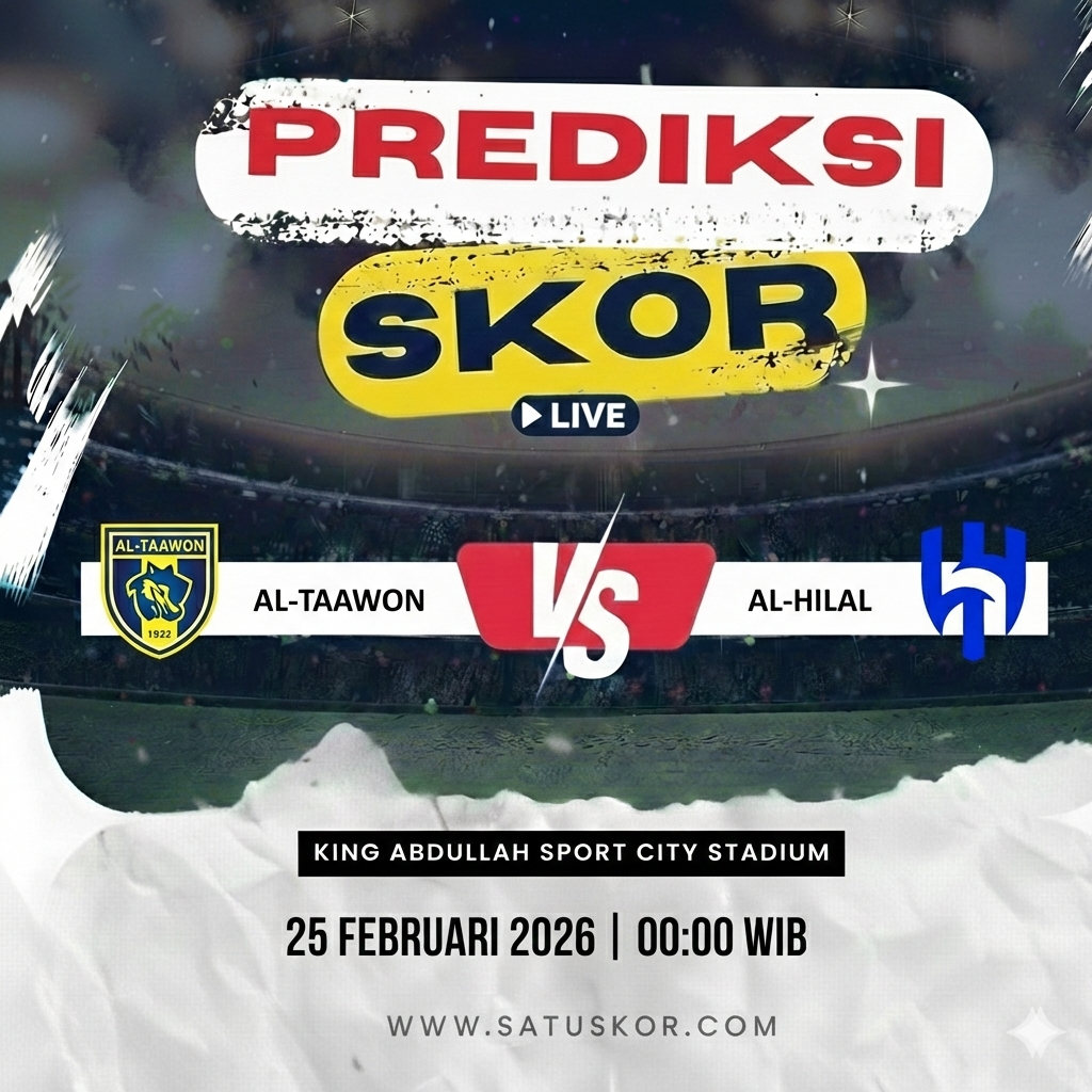 Satuskor.com – Prediksi pertandingan menarik akan tersaji pada Rabu, 25 Februari 2026, ketika Al-Taawon vs Al-Hilal dalam lanjutan Saudi Pro League 2025/2026. Laga ini akan digelar di King Abdullah Sport City Stadium dan dijadwalkan kick-off pukul 00:00 WIB.