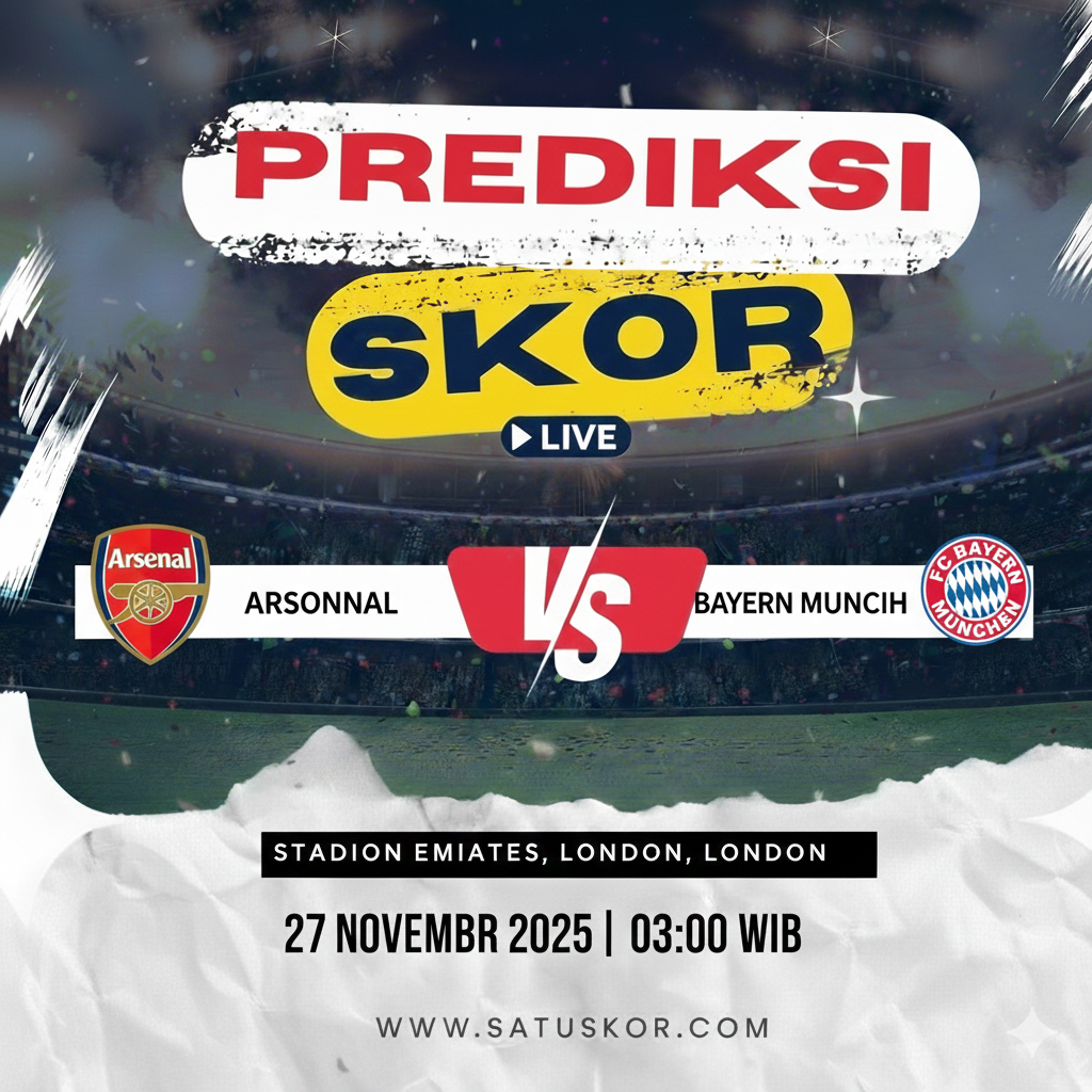 Satuskor.com – Prediksi laga super panas akan terjadi pada Kamis, 27 November 2025, ketika Arsenal vs Bayern Munich di Emirates Stadium dalam lanjutan fase grup Liga Champions 2025/2026. Pertandingan ini dijadwalkan kick-off pukul 03:00 WIB dan dapat disaksikan melalui beIN Sports serta platform streaming Vidio dan UEFA.tv.