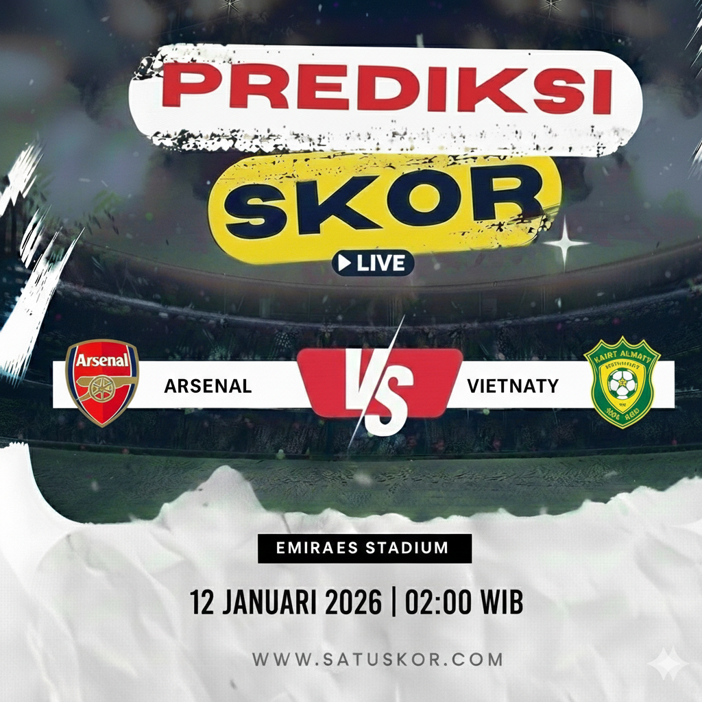 Satuskor.com – Prediksi pertandingan Arsenal vs Kairat Almaty pada Kamis, 29 Januari 2026, dalam lanjutan kompetisi Eropa musim 2025/2026. Pertandingan ini akan berlangsung di Emirates Stadium pada pukul 03:00 WIB dan disiarkan melalui platform streaming resmi UEFA serta pemegang hak siar di masing-masing negara.
