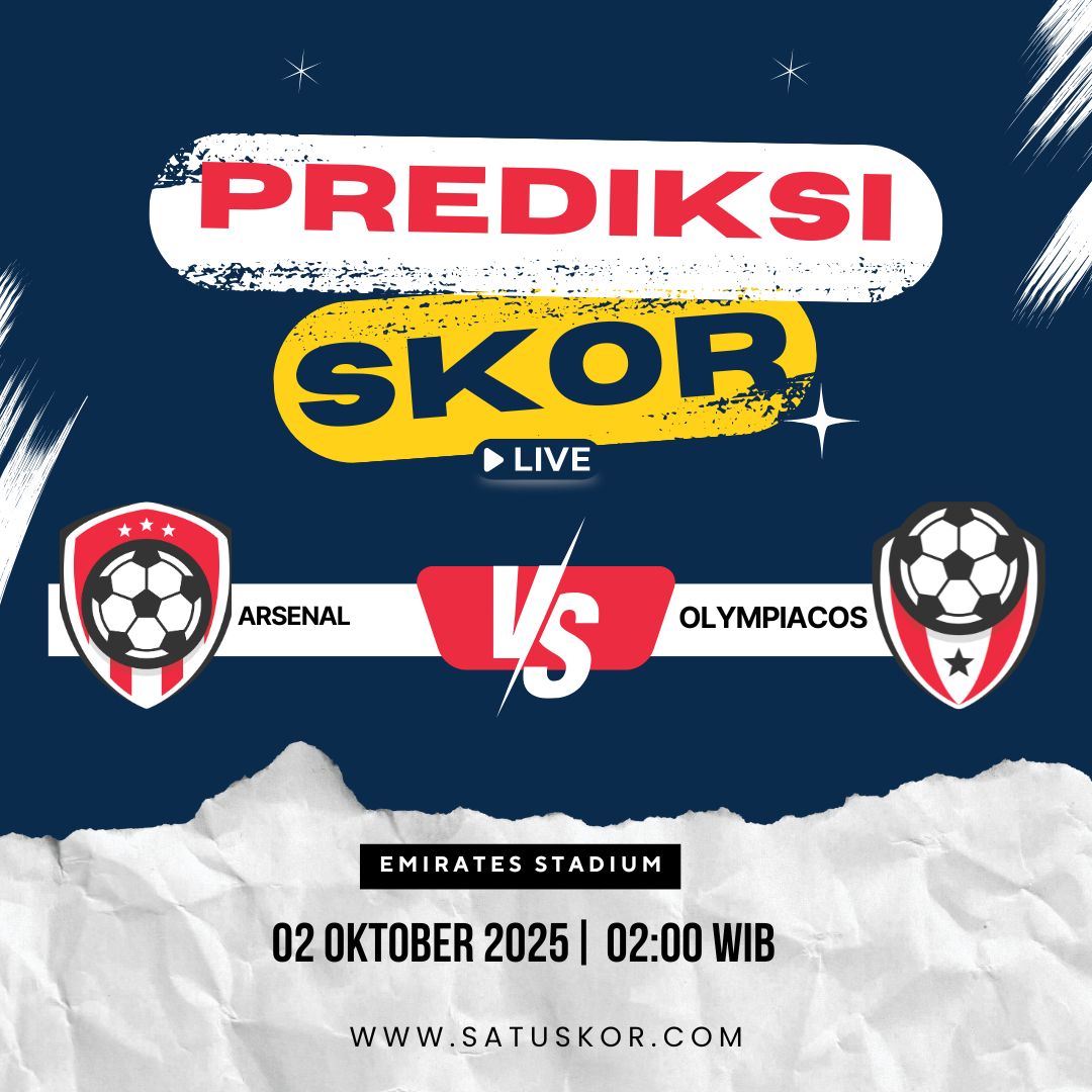 Satuskor.com – Prediksi pertandingan menarik akan hadir pada Kamis, 2 Oktober 2025, saat Arsenal vs Olympiacos di Emirates Stadium dalam lanjutan fase grup Liga Europa. Duel ini dijadwalkan kick-off pukul 02:00 WIB dan dapat disaksikan melalui siaran langsung di SCTV, Vidio, dan UEFA.tv.
