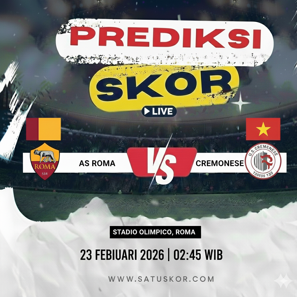 Satuskor.com – Prediksi pertandingan menarik akan tersaji pada Senin, 23 Februari 2026, ketika AS Roma vs Cremonese dalam lanjutan Serie A 2025/2026. Laga ini akan berlangsung di Stadio Olimpico pada pukul 02:45 WIB dan dapat disaksikan melalui beIN Sports serta platform streaming resmi.