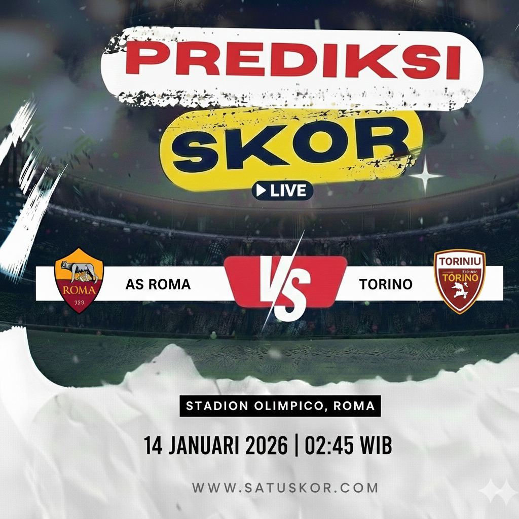 Satuskor.com – Prediksi pertandingan menarik akan tersaji pada Rabu, 14 Januari 2026, ketika AS Roma vs Torino dalam lanjutan kompetisi Serie A 2025/2026. Laga akan berlangsung di Stadion Olimpico pada pukul 02:45 WIB dan disiarkan melalui beIN Sports serta platform streaming Vidio.