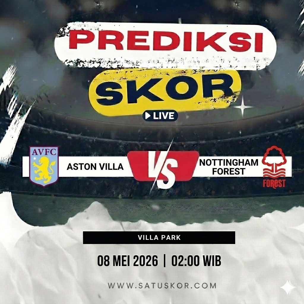 Satuskor.com – Prediksi pertandingan menarik akan tersaji pada Jumat, 8 Mei 2026, ketika Aston Villa vs Nottingham Forest dalam lanjutan Premier League 2025/2026. Laga ini akan berlangsung di Villa Park pada pukul 02:00 WIB dan dapat disaksikan melalui SCTV, Vidio, serta platform streaming resmi lainnya.