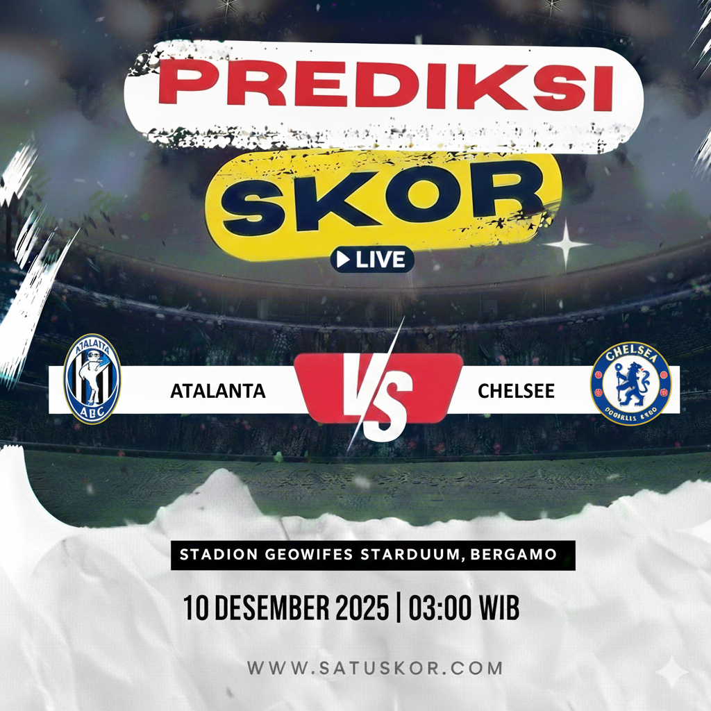 Satuskor.com – Prediksi laga bergengsi akan tersaji pada Rabu, 10 Desember 2025, ketika Atalanta vs Chelsea dalam lanjutan penyisihan grup Liga Champions 2025/2026. Pertandingan akan berlangsung di Gewiss Stadium pada pukul 03:00 WIB dan disiarkan melalui Champions TV serta platform Vidio.