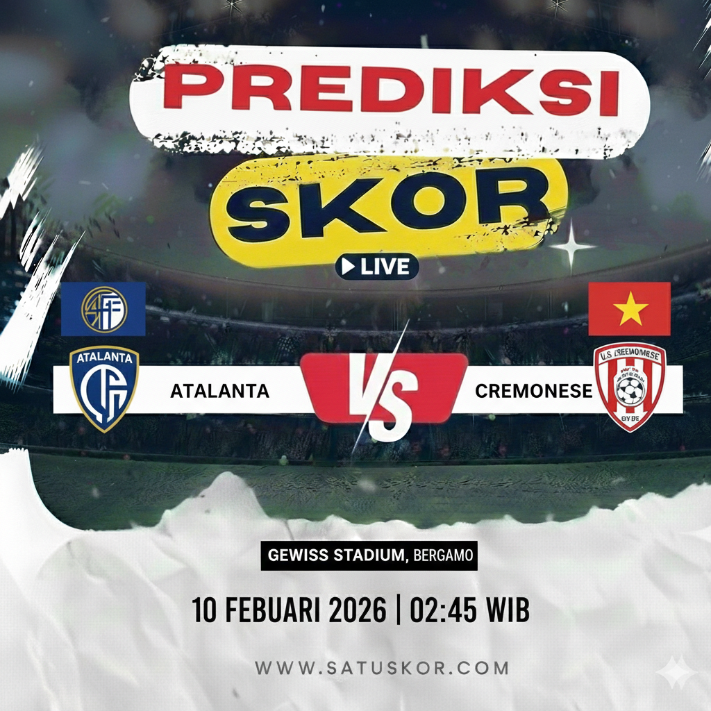 Satuskor.com – Prediksi pertandingan menarik akan tersaji pada Selasa, 10 Februari 2026, saat Atalanta vs Cremonese dalam lanjutan kompetisi Serie A 2025/2026. Laga ini akan digelar di Gewiss Stadium pada pukul 02:45 WIB dan disiarkan melalui beIN Sports serta platform streaming Vidio.