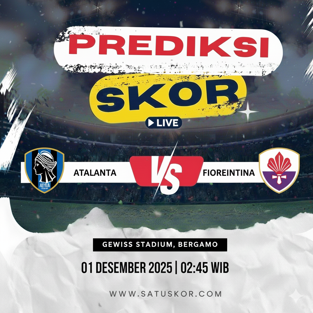 Satuskor.com – Prediksi laga menarik Serie A akan tersaji pada Senin, 1 Desember 2025, saat Atalanta vs Fiorentina di Gewiss Stadium. Pertandingan ini dijadwalkan berlangsung pukul 02:45 WIB dan bisa disaksikan melalui beIN Sports serta platform streaming Vidio bagi pengguna berlangganan.