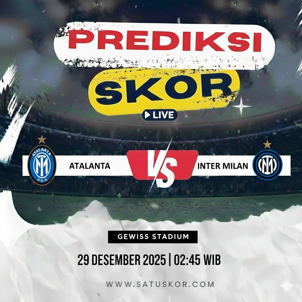 Satuskor.com – Prediksi pertandingan besar akan tersaji pada Senin, 29 Desember 2025, saat Atalanta vs Inter Milan dalam lanjutan Serie A 2025/2026. Laga ini akan berlangsung di Gewiss Stadium pada pukul 02:45 WIB dan disiarkan melalui beIN Sports serta platform streaming Vidio.