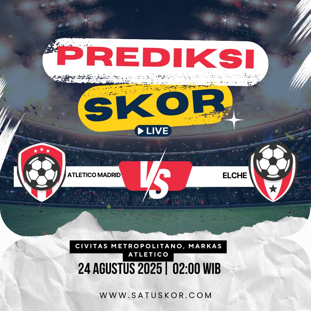 Satuskor.com – Prediksi pertandingan seru La Liga 2025/26 akan mempertemukan Atletico Madrid vs Elche pada Minggu, 24 Agustus 2025. Duel ini akan dimainkan di Civitas Metropolitano, markas Atletico, dengan kick-off pukul 02:00 WIB. Laga ini dapat disaksikan secara langsung melalui beIN Sports dan platform streaming Vidio.