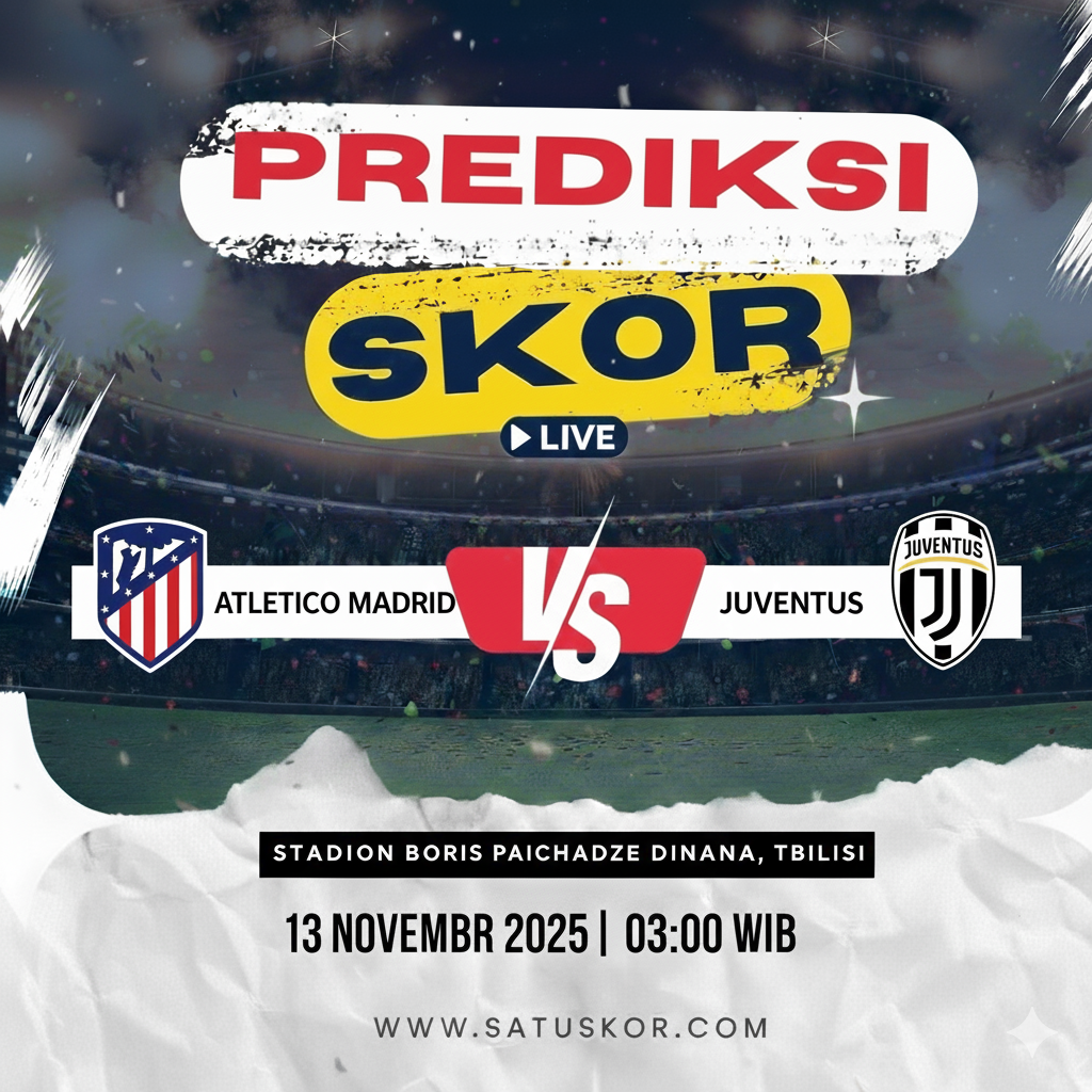 Satuskor.com – Prediksi pertandingan besar akan tersaji pada Kamis, 13 November 2025, saat Atletico Madrid vs Juventus di Wanda Metropolitano dalam lanjutan fase grup Liga Champions UEFA. Duel antara dua raksasa Eropa ini dijadwalkan kick-off pukul 03:00 WIB dan akan disiarkan langsung melalui beIN Sports, serta bisa ditonton via streaming di Vidio dan UEFA.tv bagi pengguna berlangganan.