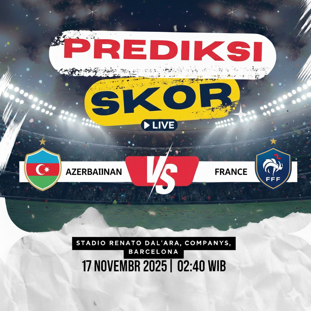 Satuskor.com – Prediksi duel menarik akan tersaji pada Senin, 17 November 2025, ketika Tim Nasional Azerbaijan vs Prancis dalam lanjutan Kualifikasi Piala Dunia 2026 zona Eropa. Pertandingan ini akan berlangsung di Tofiq Bahramov Stadium, Baku, dan dijadwalkan kick-off pada pukul 02:45 WIB. Laga ini bisa disaksikan secara langsung melalui kanal Mola TV dan UEFA.tv bagi pengguna yang berlangganan.