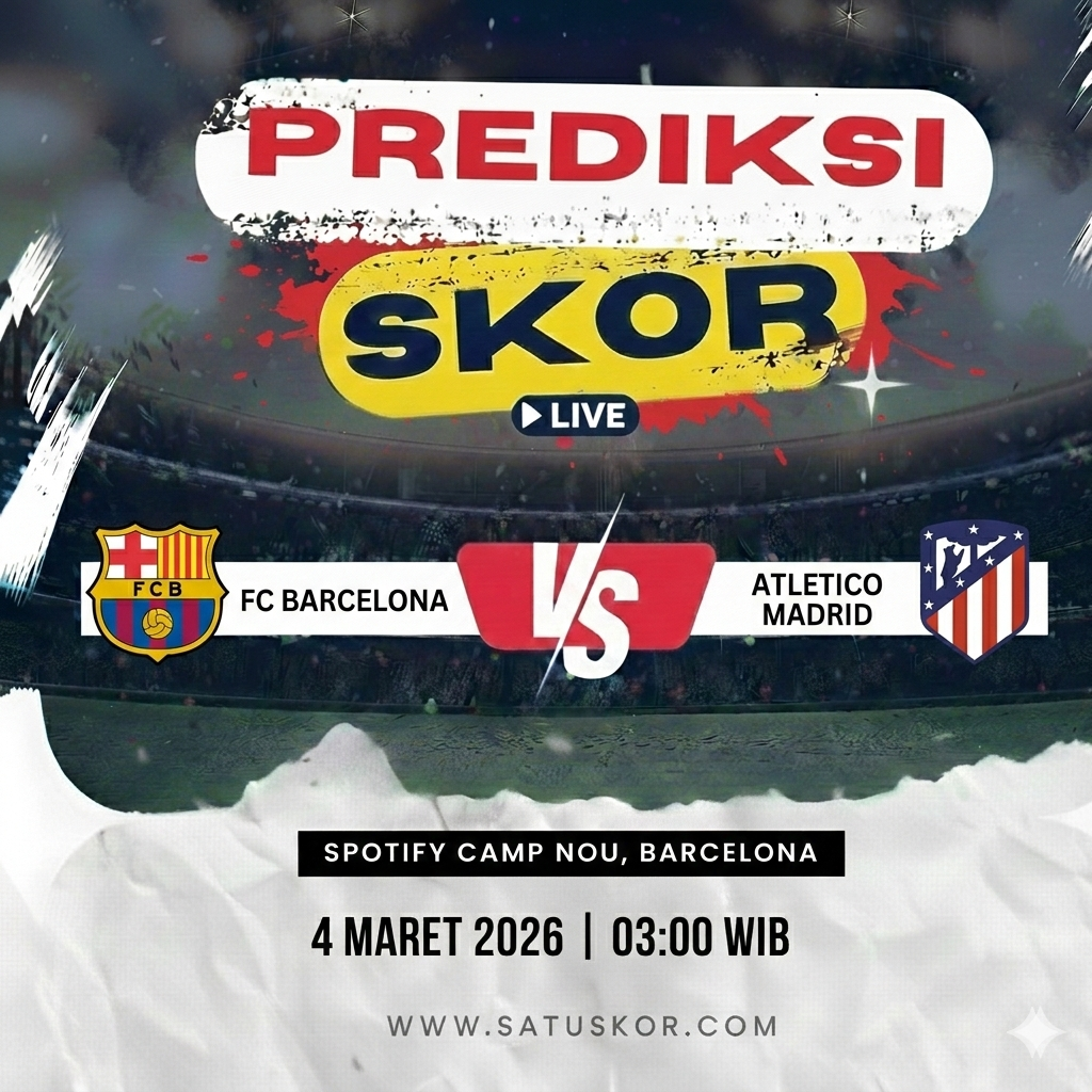 Satuskor.com – Prediksi big match La Liga akan tersaji pada Rabu, 4 Maret 2026, ketika Barcelona vs Atletico Madrid dalam lanjutan La Liga 2025/2026. Pertandingan ini akan berlangsung di Spotify Camp Nou pada pukul 03:00 WIB dan disiarkan melalui beIN Sports serta platform streaming Vidio.