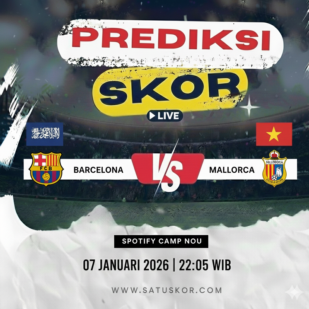 Satuskor.com – Prediksi pertandingan menarik akan tersaji pada Sabtu, 7 Februari 2026, saat Barcelona vs Mallorca dalam lanjutan kompetisi La Liga 2025/2026. Laga ini akan berlangsung di Spotify Camp Nou pada pukul 22:15 WIB dan disiarkan melalui beIN Sports serta platform streaming resmi Vidio.