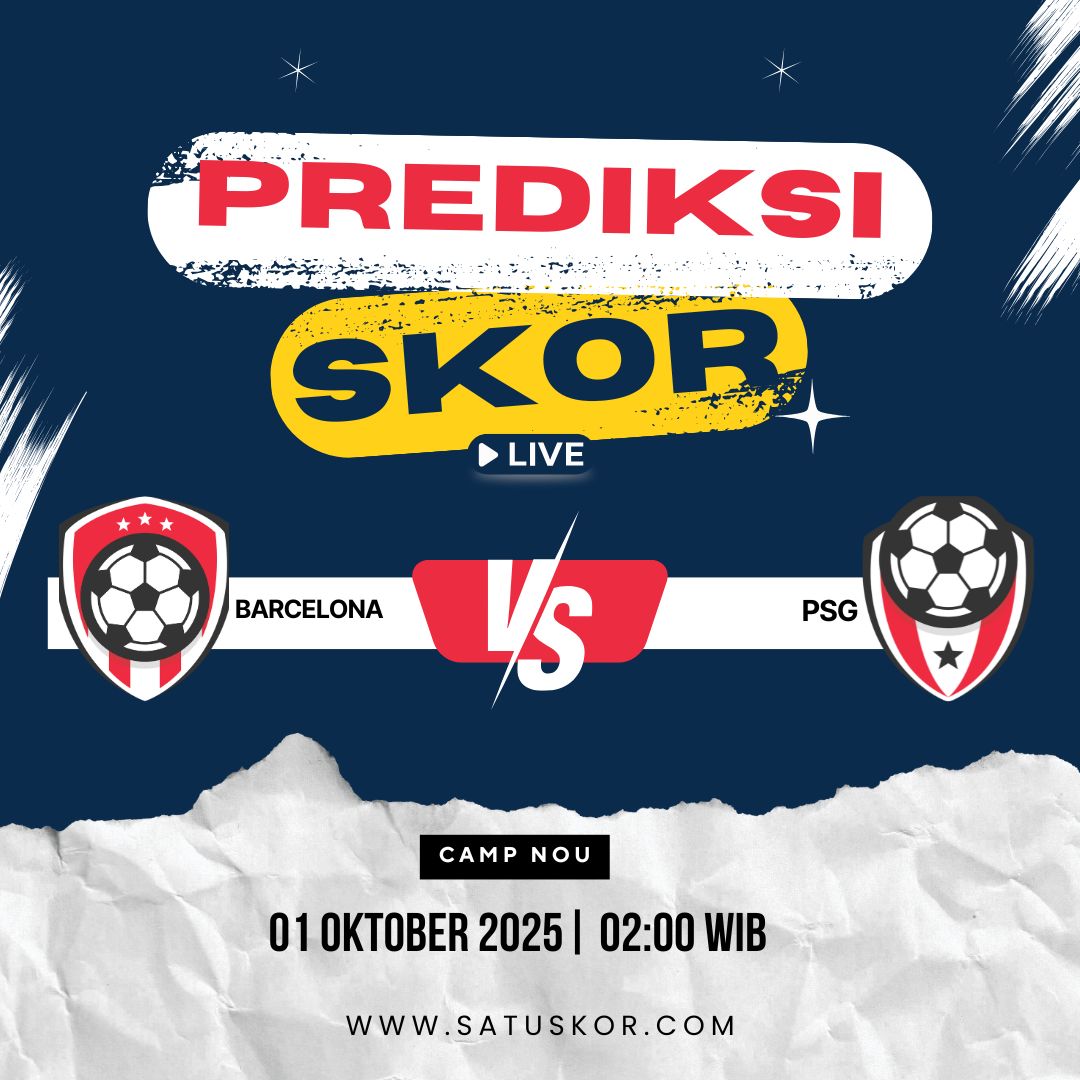 Satuskor.com – Prediksi duel panas akan terjadi pada Rabu, 1 Oktober 2025, saat Barcelona vs Paris Saint-Germain (PSG) di Camp Nou dalam laga fase grup Liga Champions UEFA. Pertandingan ini dijadwalkan kick-off pukul 02:00 WIB dan dapat disaksikan melalui siaran langsung di beIN Sports serta layanan streaming Vidio dan UEFA.tv.