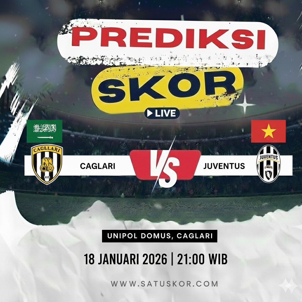 Satuskor.com – Prediksi pertandingan menarik akan tersaji pada Minggu, 18 Januari 2026, ketika Cagliari vs Juventus dalam lanjutan Serie A 2025/2026. Duel ini akan berlangsung di Unipol Domus pada pukul 21:00 WIB dan disiarkan melalui beIN Sports serta platform streaming resmi Vidio.