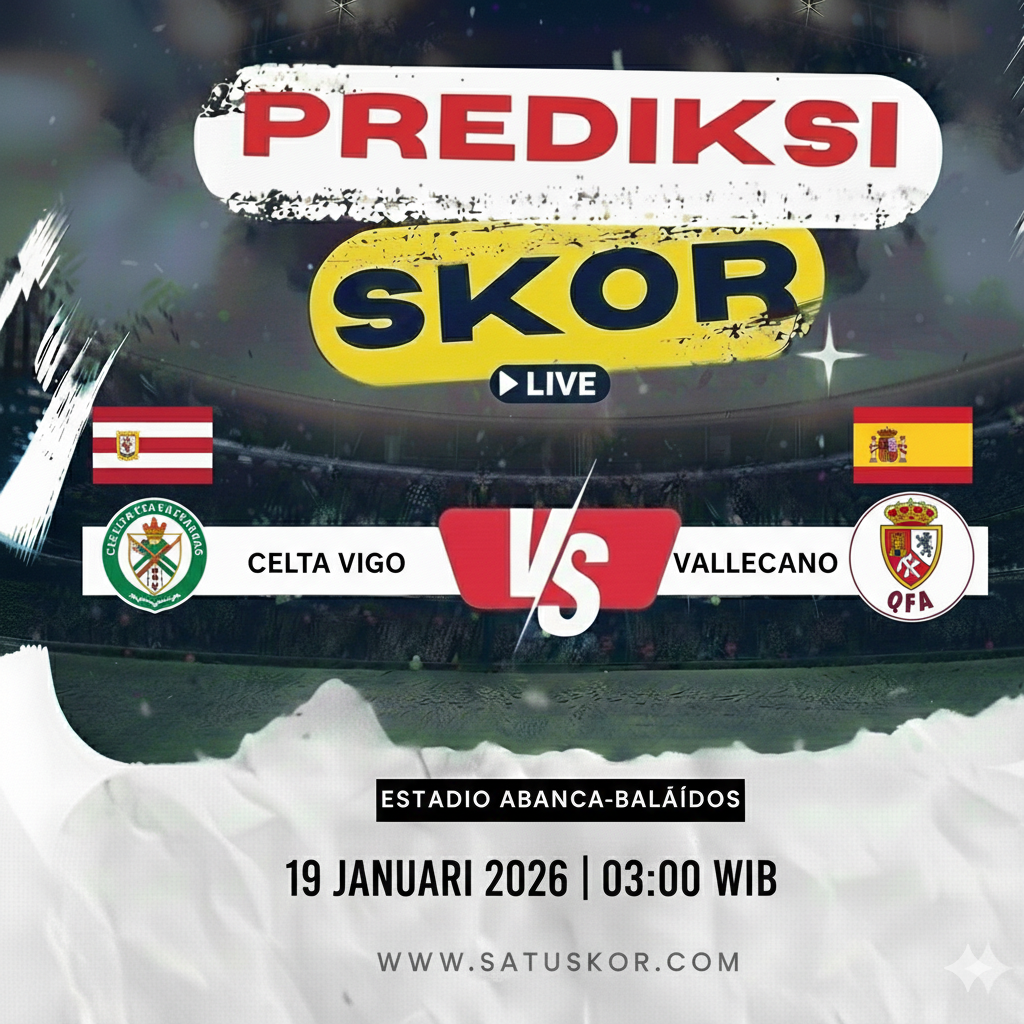 Satuskor.com – Prediksi pertandingan menarik akan tersaji pada Senin, 19 Januari 2026, saat Celta Vigo vs Rayo Vallecano dalam lanjutan kompetisi La Liga 2025/2026. Laga ini akan digelar di Estadio Abanca-Balaídos pada pukul 03:00 WIB dan disiarkan melalui beIN Sports serta platform streaming resmi.