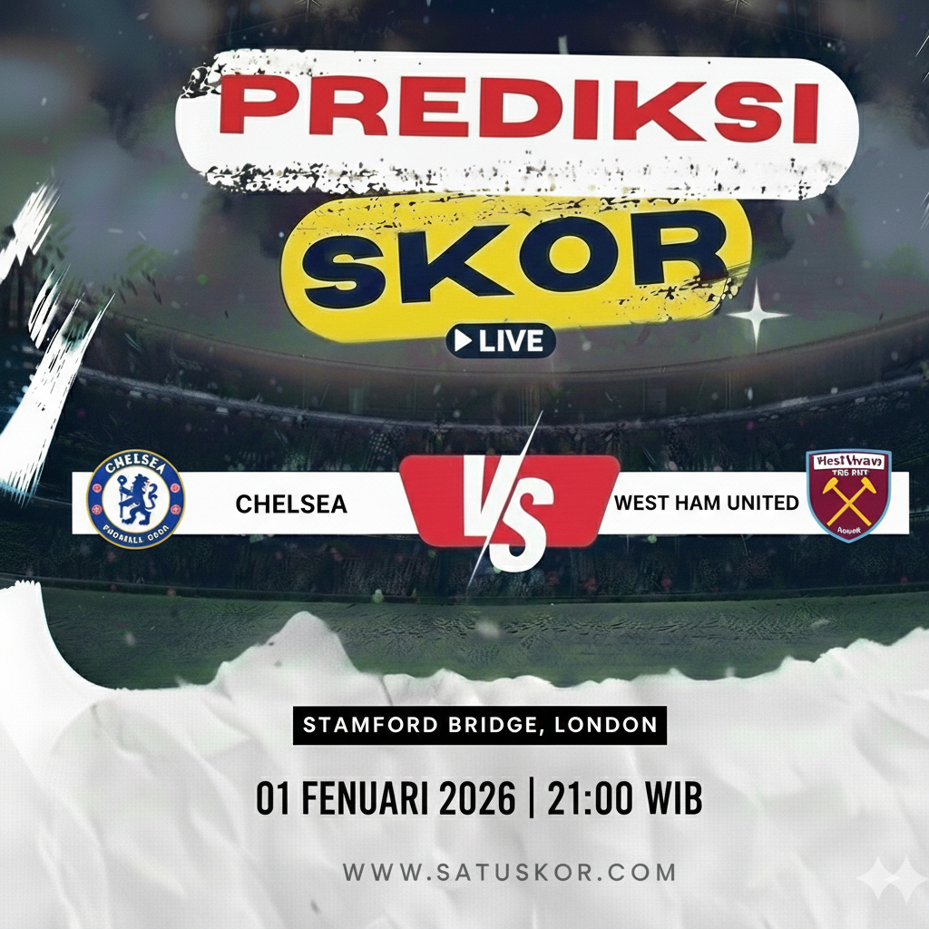 Satuskor.com – Prediksi pertandingan seru akan tersaji pada Minggu, 1 Februari 2026, saat Chelsea vs West Ham United dalam lanjutan Premier League 2025/2026. Duel bertajuk Derbi London ini akan berlangsung di Stamford Bridge pada pukul 21:00 WIB dan disiarkan melalui platform resmi Premier League serta layanan streaming berlisensi.