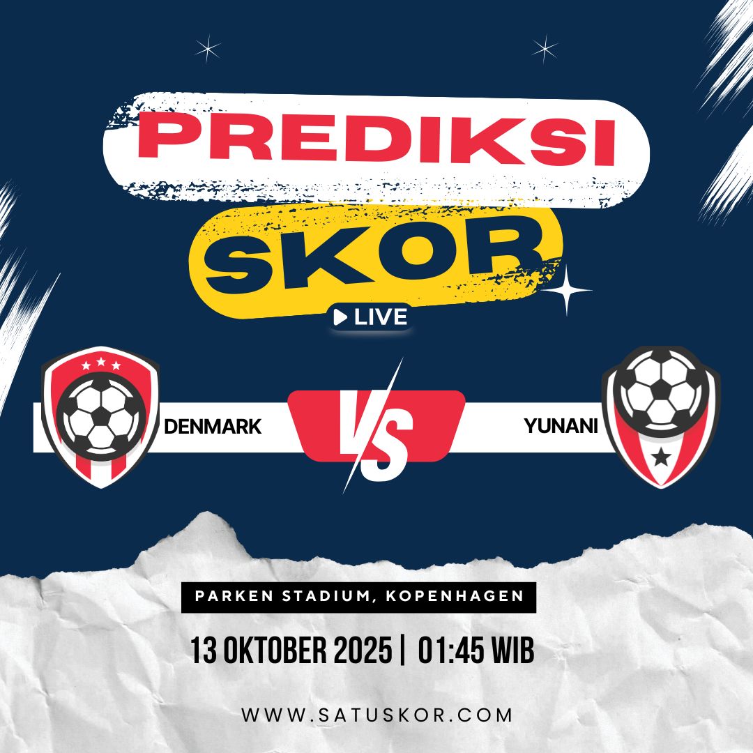 Satuskor.com – Prediksi pertandingan menarik akan tersaji pada Senin, 13 Oktober 2025, ketika Tim Nasional Denmark vs Yunani dalam lanjutan Kualifikasi EURO 2026. Laga ini akan berlangsung di Parken Stadium, Kopenhagen, dengan kick-off dijadwalkan pukul 01:45 WIB. Pertandingan ini dapat disaksikan secara langsung di UEFA.tv dan platform streaming sepak bola populer seperti Vidio dan Mola TV.