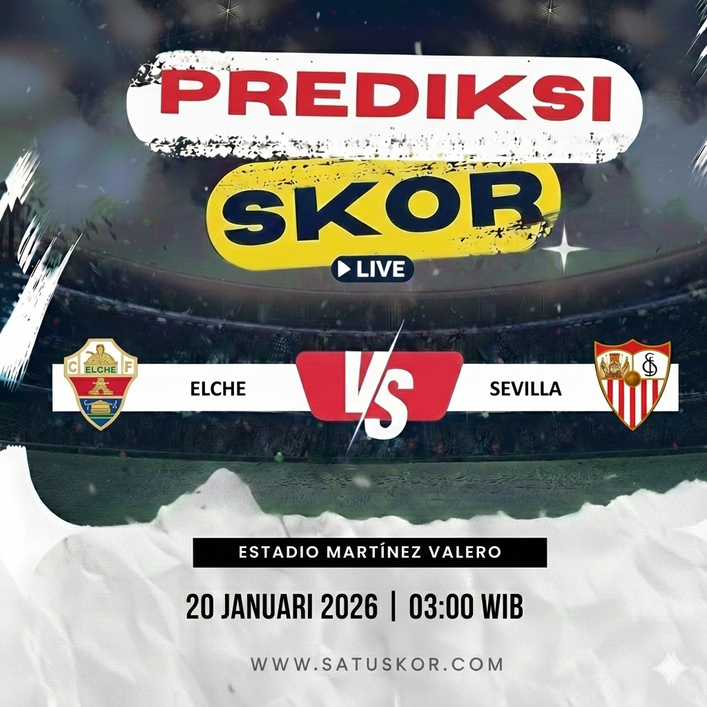 Satuskor.com – Prediksi pertandingan menarik akan tersaji pada Selasa, 20 Januari 2026, saat Elche vs Sevilla dalam lanjutan kompetisi La Liga 2025/2026. Duel ini akan berlangsung di Estadio Martínez Valero pada pukul 03:00 WIB dan disiarkan melalui beIN Sports serta platform streaming resmi Vidio.
