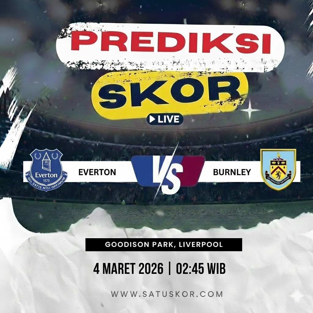 Satuskor.com – Prediksi pertandingan menarik akan tersaji pada Rabu, 4 Maret 2026, saat Everton vs Burnley dalam lanjutan Premier League 2025/2026. Duel ini akan digelar di Goodison Park pada pukul 02:45 WIB dan disiarkan melalui platform resmi pemegang hak siar Liga Inggris di Indonesia.
