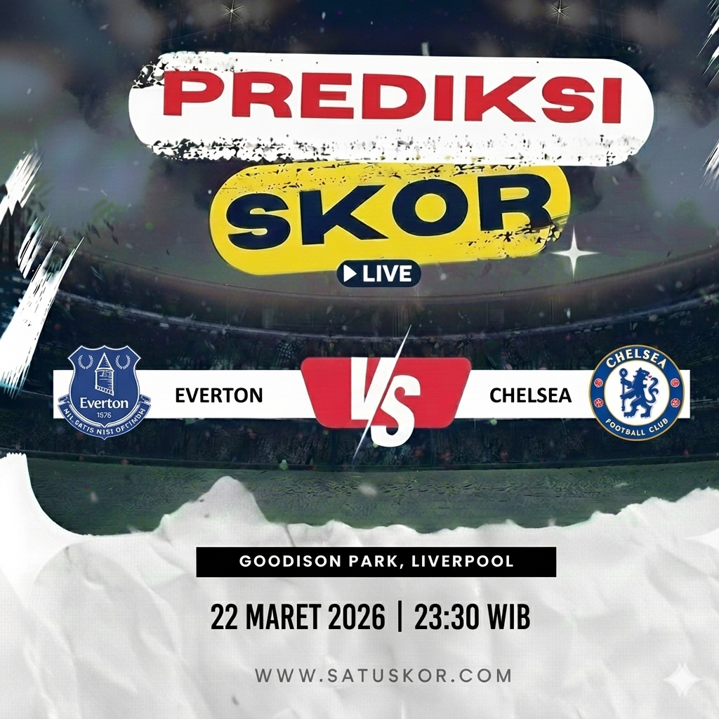 Satuskor.com – Prediksi laga menarik akan tersaji pada Minggu, 22 Maret 2026, ketika Everton vs Chelsea dalam lanjutan kompetisi Premier League 2025/2026. Pertandingan ini akan berlangsung di Goodison Park pada pukul 23:30 WIB dan disiarkan melalui platform resmi seperti Vidio serta saluran pemegang hak siar.
