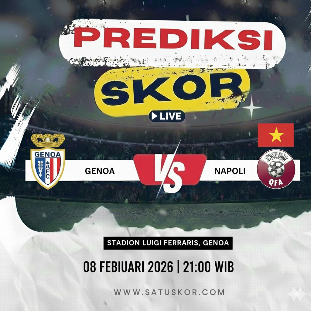 Satuskor.com – Prediksi pertandingan menarik akan tersaji pada Minggu, 8 Februari 2026, saat Genoa vs Napoli dalam lanjutan kompetisi Serie A 2025/2026. Laga ini akan berlangsung di Stadion Luigi Ferraris pada pukul 21:00 WIB dan disiarkan melalui beIN Sports serta platform streaming Vidio.