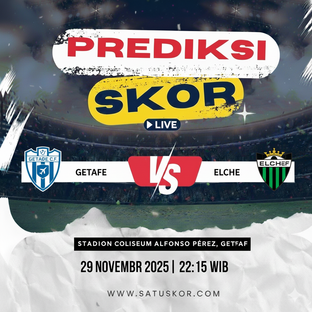 Satuskor.com – Prediksi pertandingan antara Getafe vs Elche akan tersaji pada Sabtu, 29 November 2025, dalam lanjutan kompetisi La Liga 2025/2026. Laga ini akan digelar di Coliseum Alfonso Pérez, markas Getafe, dengan kick-off pukul 22:15 WIB. Pertandingan dapat disaksikan melalui beIN Sports, Vidio, serta layanan streaming resmi La Liga.