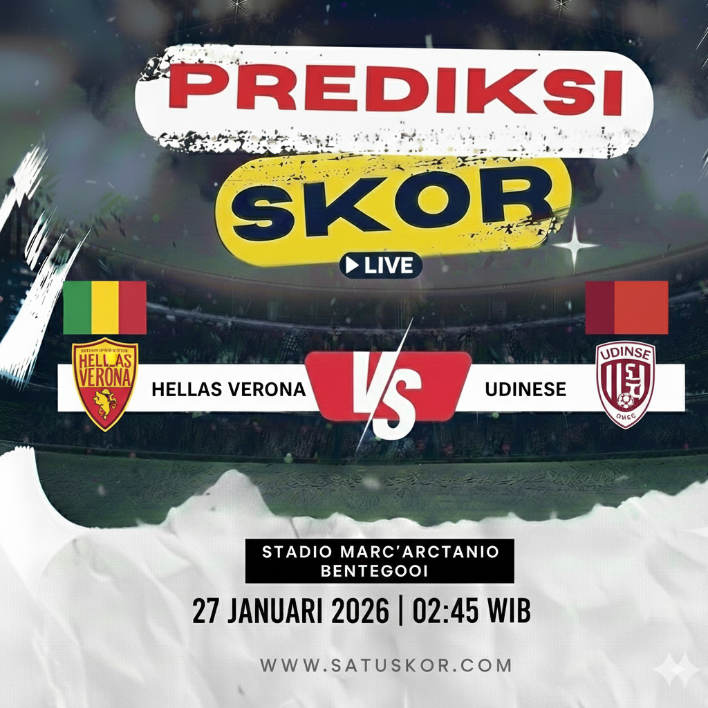 Satuskor.com – Prediksi pertandingan menarik akan tersaji pada Selasa, 27 Januari 2026, saat Hellas Verona vs Udinese dalam lanjutan kompetisi Serie A 2025/2026. Laga ini akan berlangsung di Stadio Marcantonio Bentegodi pada pukul 02:45 WIB dan disiarkan melalui beIN Sports serta platform streaming Vidio.