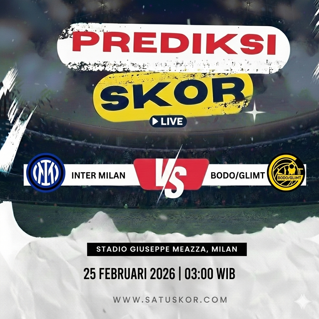 Satuskor.com – Prediksi laga menarik akan tersaji pada Rabu, 25 Februari 2026, ketika Inter Milan vs Bodo/Glimt dalam lanjutan kompetisi Eropa musim 2025/2026. Pertandingan akan digelar di Stadio Giuseppe Meazza pada pukul 03:00 WIB dan disiarkan melalui platform resmi pemegang hak siar kompetisi Eropa.