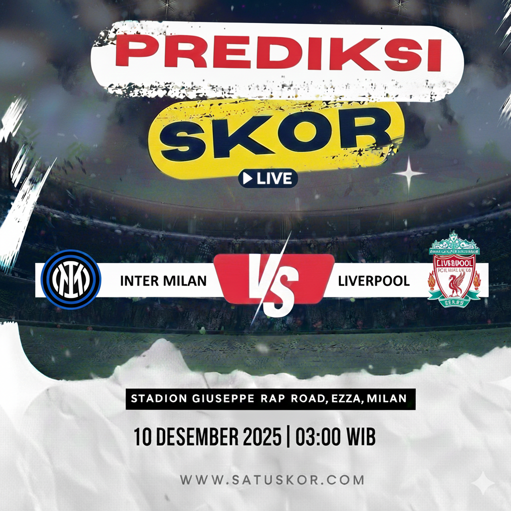 Satuskor.com – Prediksi laga super big match akan tersaji pada Rabu, 10 Desember 2025, ketika Inter Milan vs Liverpool dalam lanjutan babak penyisihan Liga Champions 2025/2026. Duel bergengsi ini digelar di Stadio Giuseppe Meazza pada pukul 03:00 WIB dan dapat disaksikan melalui Champions TV serta platform Vidio.
