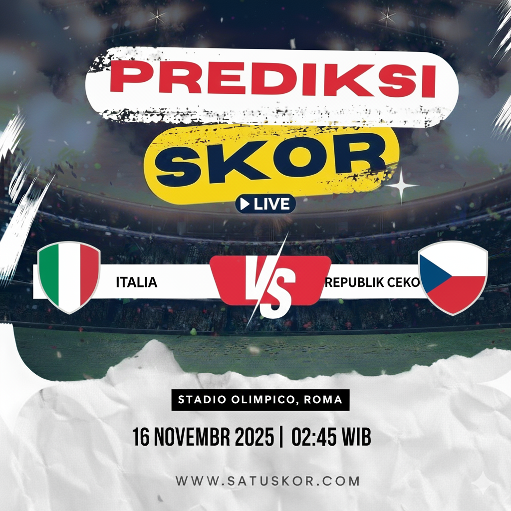 Satuskor.com – Prediksi pertandingan menarik akan tersaji pada Sabtu, 15 November 2025, saat Tim Nasional Italia vs Republik Ceko dalam laga persahabatan internasional yang digelar di Stadio Olimpico, Roma. Duel ini dijadwalkan kick-off pukul 02:45 WIB dan dapat disaksikan secara langsung melalui Rai Italia, serta layanan streaming UEFA.tv dan Vidio bagi penonton di Indonesia.
