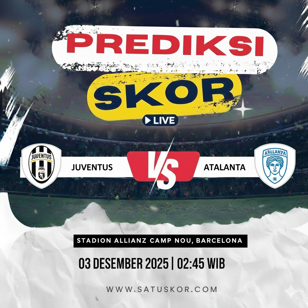 Satuskor.com – Prediksi laga besar akan tersaji pada Rabu, 3 Desember 2025, ketika Juventus vs Atalanta di Allianz Stadium, Turin. Pertandingan pekan Serie A ini dijadwalkan berlangsung pada pukul 02:45 WIB, dan disiarkan secara langsung melalui beIN Sports, serta tersedia di layanan streaming Vidio dan DAZN.