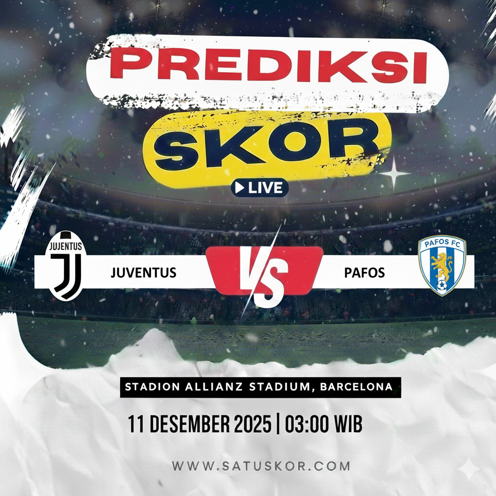 Satuskor.com – Prediksi laga menarik akan tersaji pada Kamis, 11 Desember 2025, ketika Juventus vs Pafos dalam lanjutan babak penyisihan UEFA Europa League 2025/2026. Pertandingan akan digelar di Allianz Stadium pada pukul 03:00 WIB dan disiarkan melalui UEFA.tv serta platform streaming resmi Vidio.