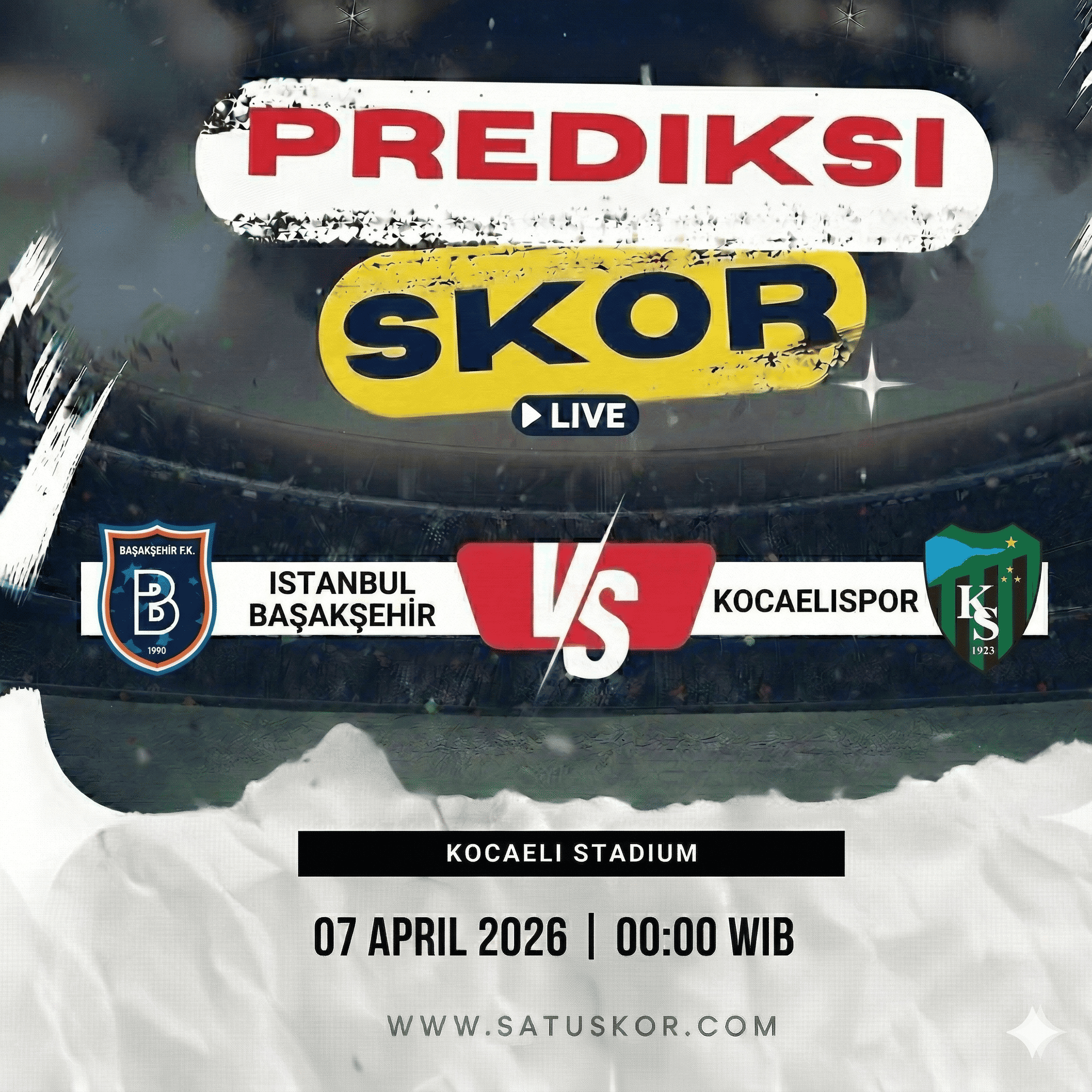 Satuskor.com – Prediksi pertandingan menarik akan tersaji pada Selasa, 7 April 2026, ketika Kocaelispor vs Istanbul Basaksehir dalam lanjutan kompetisi Turki. Duel ini akan berlangsung di Kocaeli Stadium pada pukul 00:00 WIB dan dapat disaksikan melalui platform streaming resmi liga.