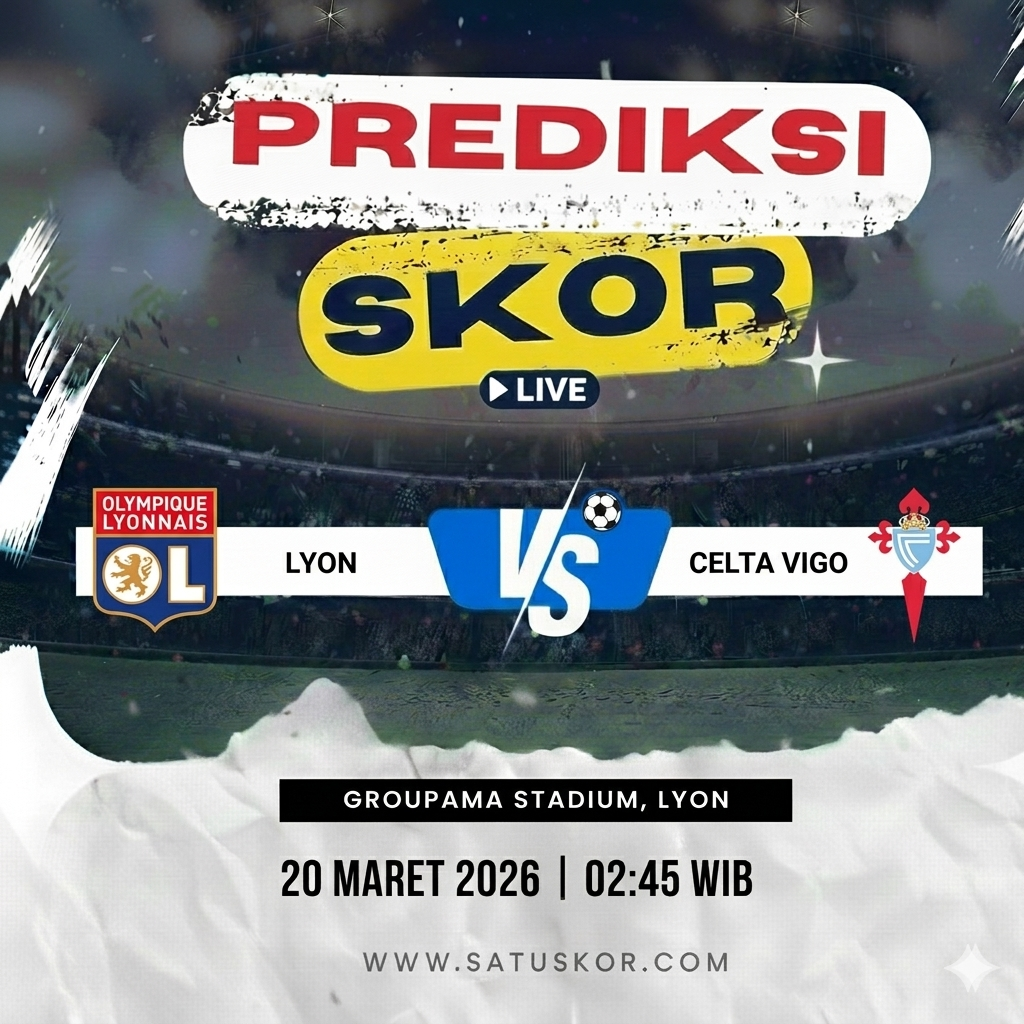 Satuskor.com – Prediksi pertandingan menarik akan tersaji pada Jum'at, 20 Maret 2026, ketika Lyon vs Celta Vigo dalam laga uji coba internasional antarklub. Pertandingan ini dijadwalkan berlangsung di Groupama Stadium pada pukul 02:45 WIB dan diperkirakan akan disiarkan melalui platform streaming resmi klub.