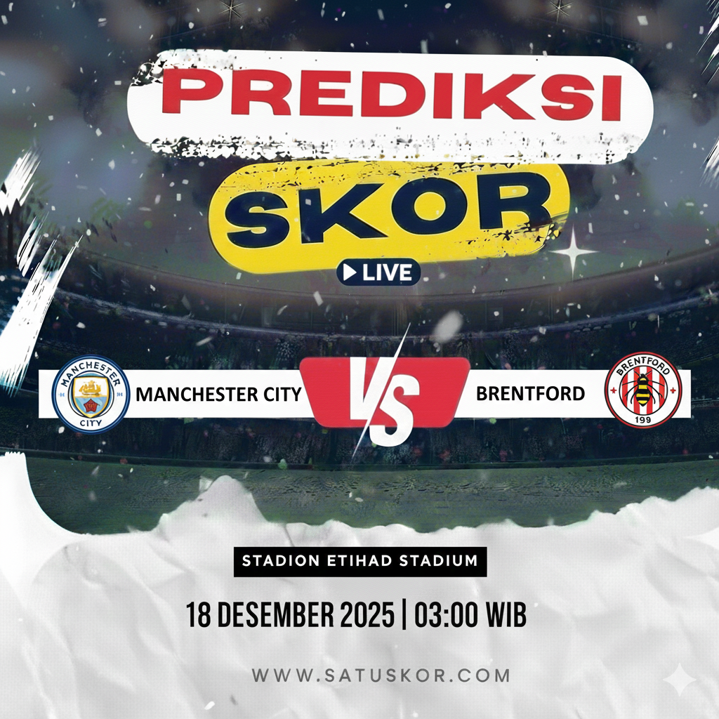 Satuskor.com – Prediksi pertandingan menarik akan tersaji pada Kamis, 18 Desember 2025, saat Manchester City vs Brentford dalam lanjutan Premier League 2025/2026. Duel ini akan berlangsung di Etihad Stadium pada pukul 03:00 WIB dan dapat disaksikan melalui siaran langsung Champions TV serta platform streaming resmi Vidio.