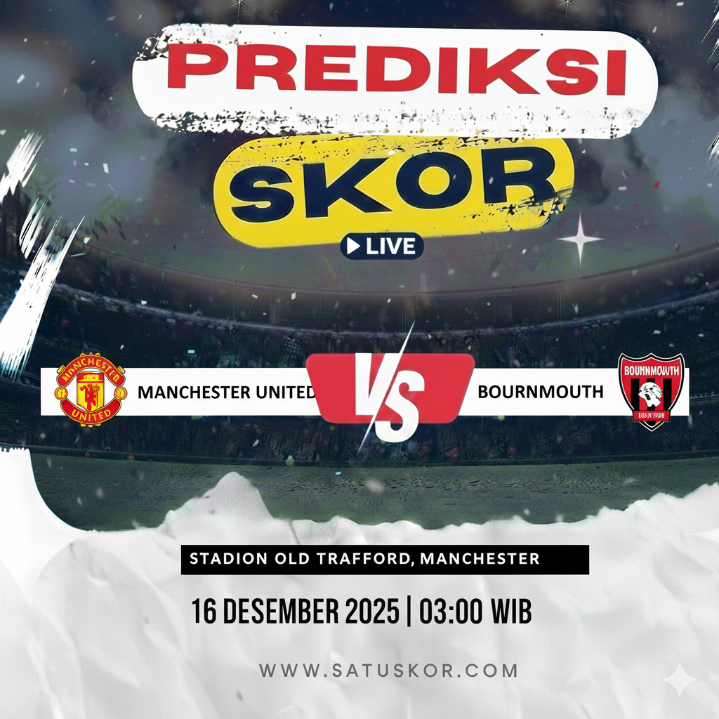 Satuskor.com – Prediksi pertandingan menarik akan tersaji pada Selasa, 16 Desember 2025, ketika Manchester United vs Bournemouth dalam lanjutan Premier League 2025/2026. Laga ini akan berlangsung di Old Trafford pada pukul 03:00 WIB dan disiarkan melalui platform resmi Premier League serta layanan streaming berlisensi di Indonesia.