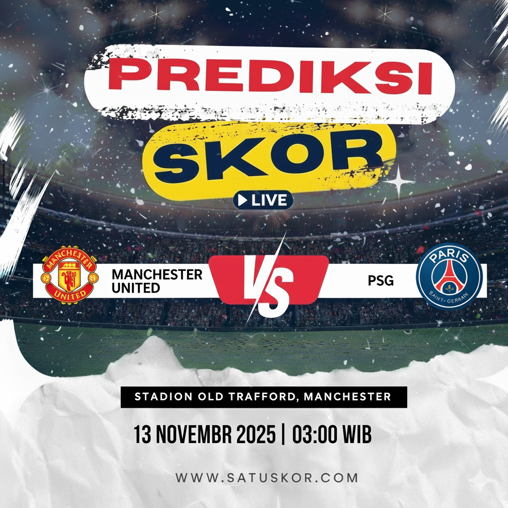 Satuskor.com – Prediksi duel panas akan tersaji pada Kamis, 13 November 2025, ketika Manchester United vs Paris Saint-Germain (PSG) dalam laga lanjutan Liga Champions UEFA musim 2025/2026. Pertandingan ini akan digelar di Old Trafford, Manchester, dengan kick-off pukul 03:00 WIB, dan disiarkan langsung melalui beIN Sports serta dapat diakses via Vidio dan UEFA.tv untuk para pelanggan berbayar.