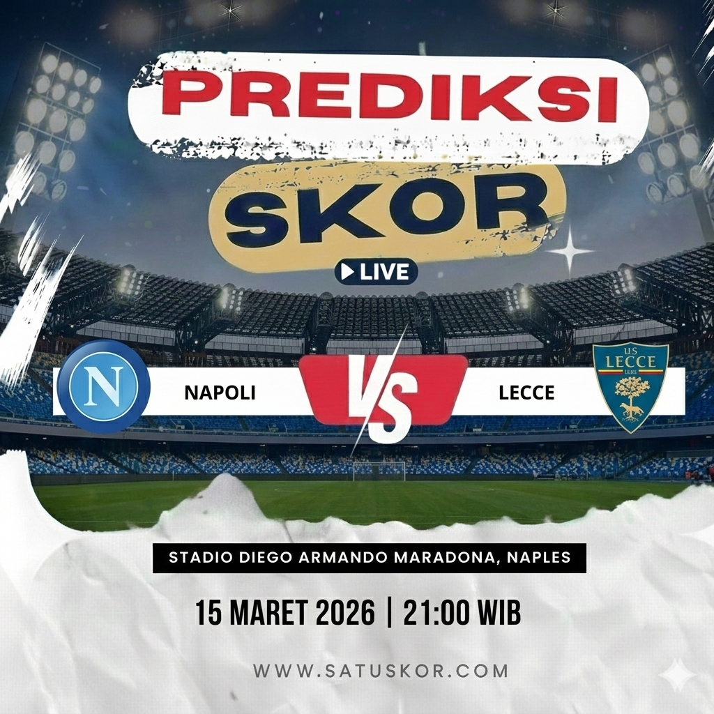 Satuskor.com – Prediksi pertandingan menarik akan tersaji pada Minggu, 15 Maret 2026, ketika Napoli vs Lecce dalam lanjutan kompetisi Serie A 2025/2026. Laga ini akan berlangsung di Stadio Diego Armando Maradona pada pukul 21:00 WIB dan dapat disaksikan melalui beIN Sports serta layanan streaming Vidio.