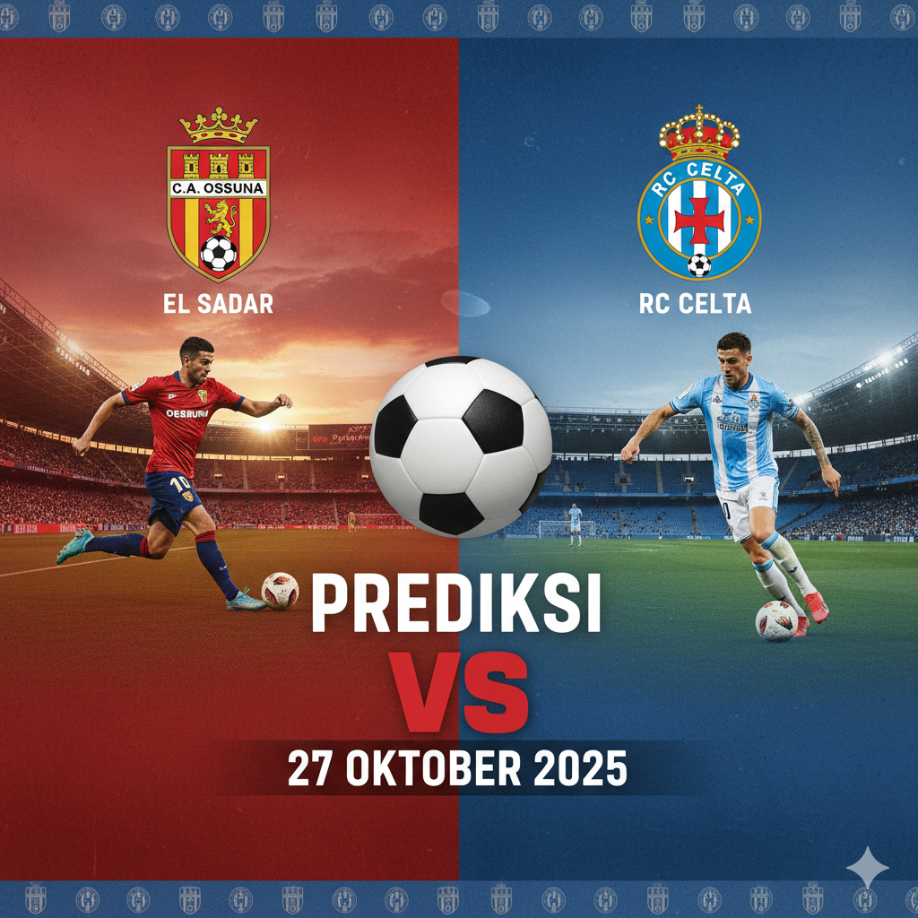 Satuskor.com – Prediksi duel menarik akan tersaji pada Senin, 27 Oktober 2025, ketika Osasuna vs Celta Vigo di Stadion El Sadar dalam lanjutan kompetisi La Liga Spanyol 2025/2026. Laga ini dijadwalkan kick-off pukul 02:00 WIB dan akan disiarkan secara langsung melalui beIN Sports serta layanan streaming Vidio dan ESPN+.