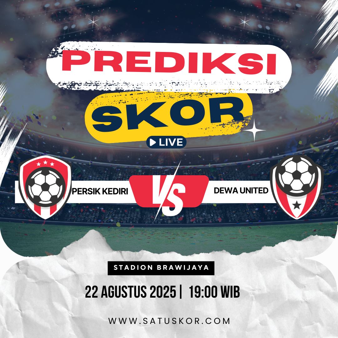 Satuskor.com – Prediksi pertandingan menarik akan tersaji pada Jumat, 22 Agustus 2025, saat Persik Kediri vs Dewa United dalam lanjutan kompetisi Liga 1 Indonesia 2025/2026. Laga ini akan digelar di Stadion Brawijaya, Kediri, dengan kick-off pukul 19:00 WIB dan dapat disaksikan secara langsung melalui siaran Indosiar dan live streaming Vidio.