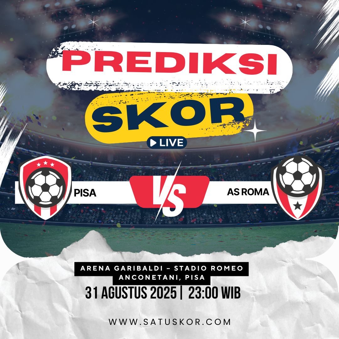 Satuskor.com – Prediksi pertandingan menarik akan berlangsung pada Minggu, 31 Agustus 2025, saat Pisa menjamu AS Roma dalam lanjutan Serie A Italia. Laga ini akan dimainkan di Arena Garibaldi – Stadio Romeo Anconetani, Pisa, dengan kick-off pukul 23:00 WIB. Duel ini bisa disaksikan secara langsung melalui beIN Sports dan layanan streaming Vidio serta DAZN bagi pelanggan yang berlangganan.