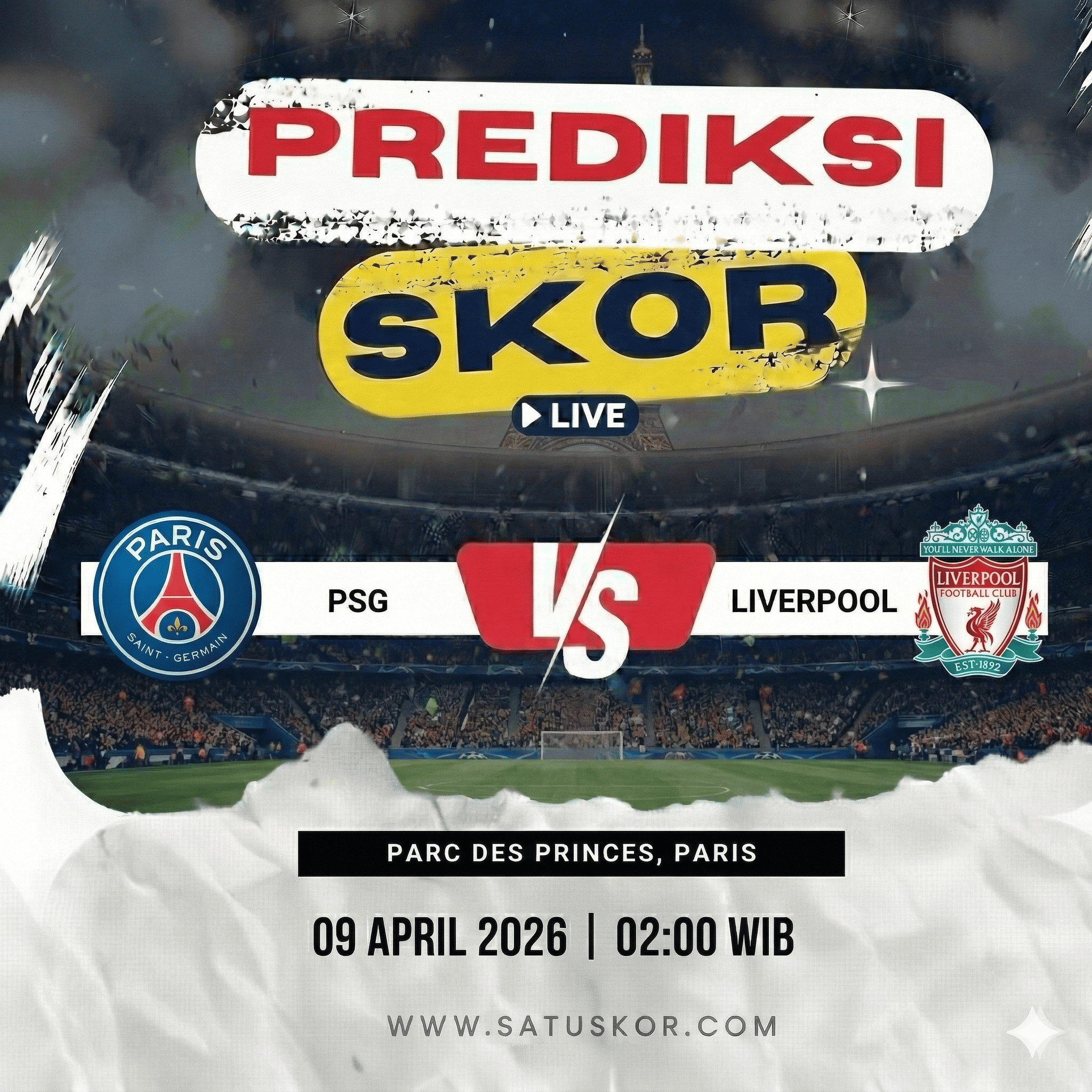 Satuskor.com – Prediksi pertandingan big match akan tersaji pada Kamis, 9 April 2026, ketika PSG vs Liverpool dalam lanjutan kompetisi Liga Champions 2025/2026. Laga ini akan berlangsung di Parc des Princes pada pukul 02:00 WIB dan disiarkan melalui SCTV serta platform streaming Vidio.