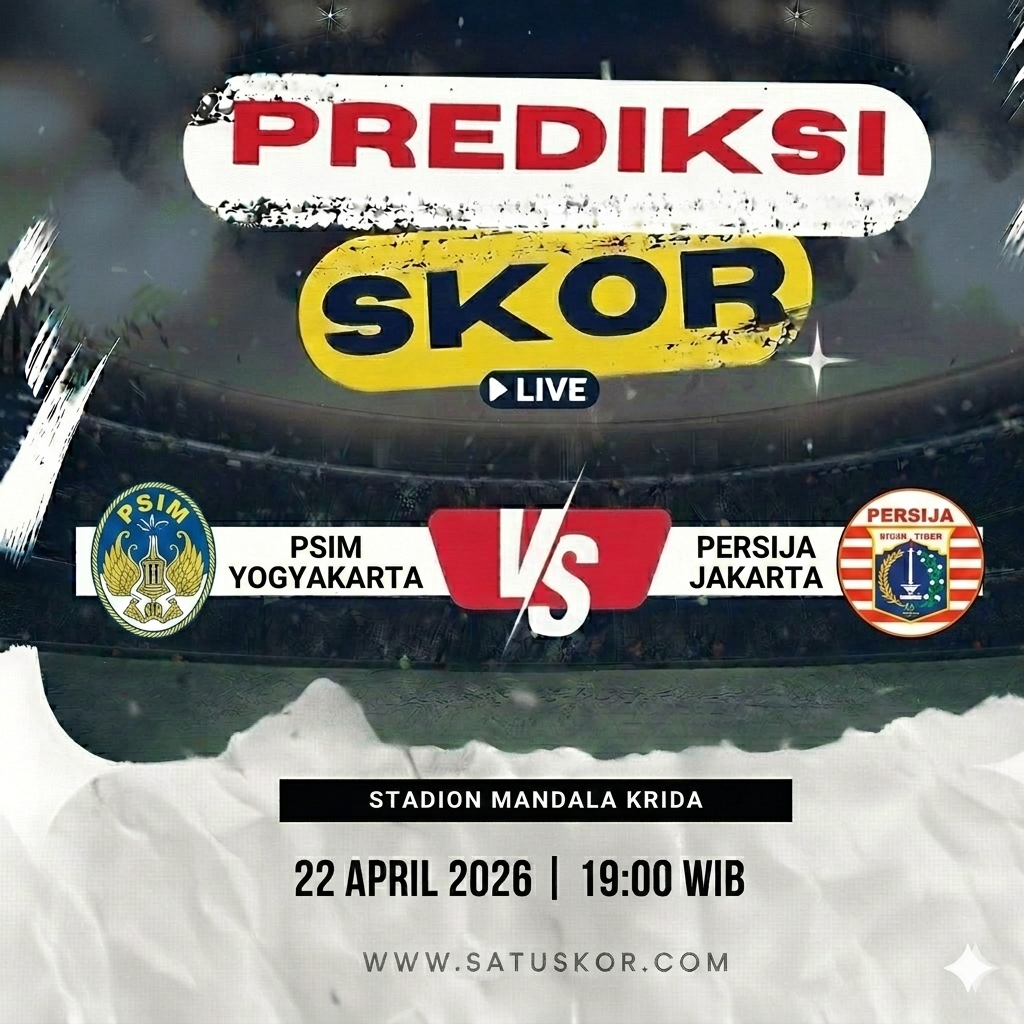 Satuskor.com – Prediksi pertandingan menarik akan tersaji pada Rabu, 22 April 2026, ketika PSIM Yogyakarta vs Persija Jakarta dalam lanjutan kompetisi sepak bola Indonesia musim 2025/2026. Duel ini akan berlangsung di Stadion Mandala Krida pada pukul 19:00 WIB dan dapat disaksikan melalui platform streaming resmi serta siaran televisi nasional.