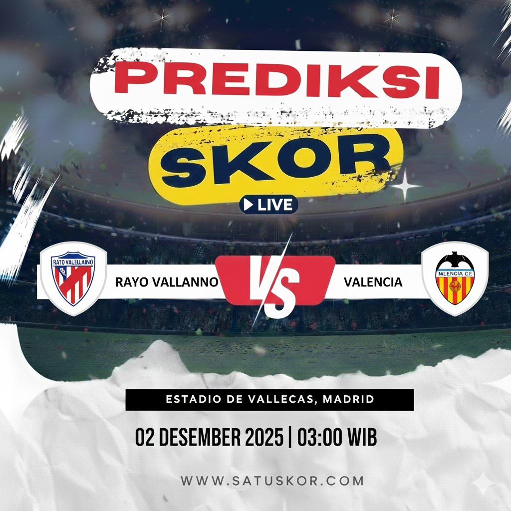 Satuskor.com – Prediksi laga menarik La Liga akan tersaji pada Selasa, 2 Desember 2025, ketika Rayo Vallecano vs Valencia di Estadio de Vallecas. Pertandingan dijadwalkan berlangsung pukul 03:00 WIB dan dapat disaksikan melalui beIN Sports, Vidio, serta layanan streaming resmi La Liga.