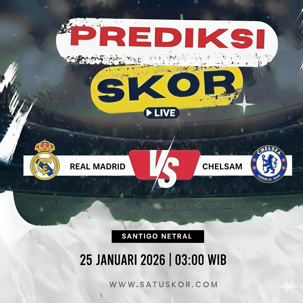 Satuskor.com – Prediksi laga big match akan tersaji pada Rabu, 25 Februari 2026, ketika Real Madrid vs Chelsea dalam lanjutan babak gugur kompetisi Eropa musim 2025/2026. Pertandingan akan digelar di Santiago Bernabéu pada pukul 03:00 WIB dan disiarkan melalui beIN Sports serta platform streaming resmi.