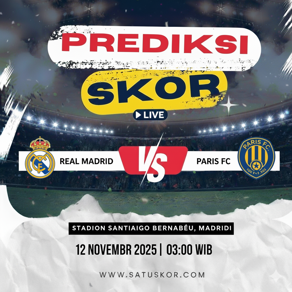 Satuskor.com – Prediksi duel menarik akan tersaji pada Rabu, 12 November 2025, ketika Real Madrid vs Paris FC dalam pertandingan persahabatan internasional klub di Santiago Bernabéu. Laga ini dijadwalkan kick-off pukul 03:00 WIB dan dapat disaksikan melalui beIN Sports, RCTI+, dan layanan streaming resmi Real Madrid TV.