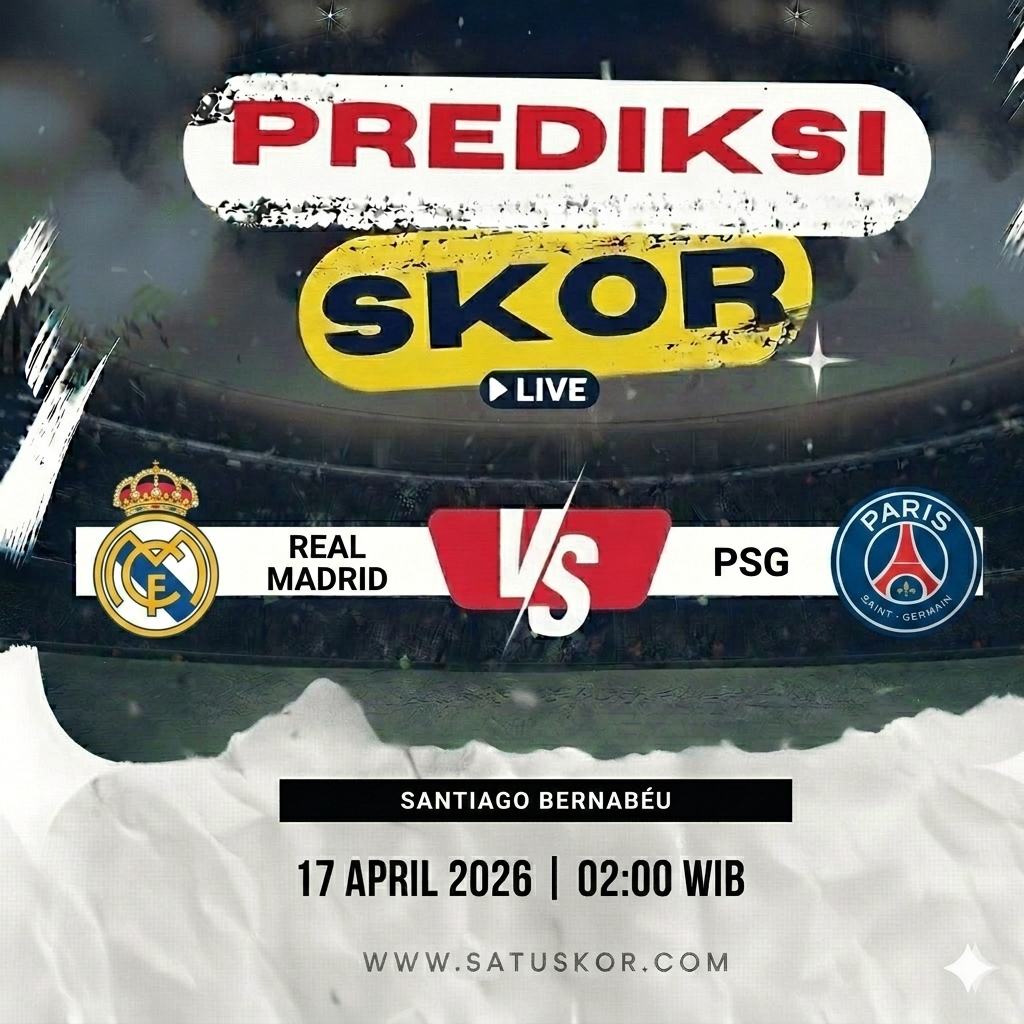 Satuskor.com – Prediksi laga big match akan tersaji pada Jumat, 17 April 2026, ketika Real Madrid vs PSG dalam lanjutan babak perempat final kompetisi Liga Champions 2025/2026. Pertandingan akan berlangsung di Santiago Bernabéu pada pukul 02:00 WIB dan disiarkan melalui SCTV serta platform streaming Vidio.