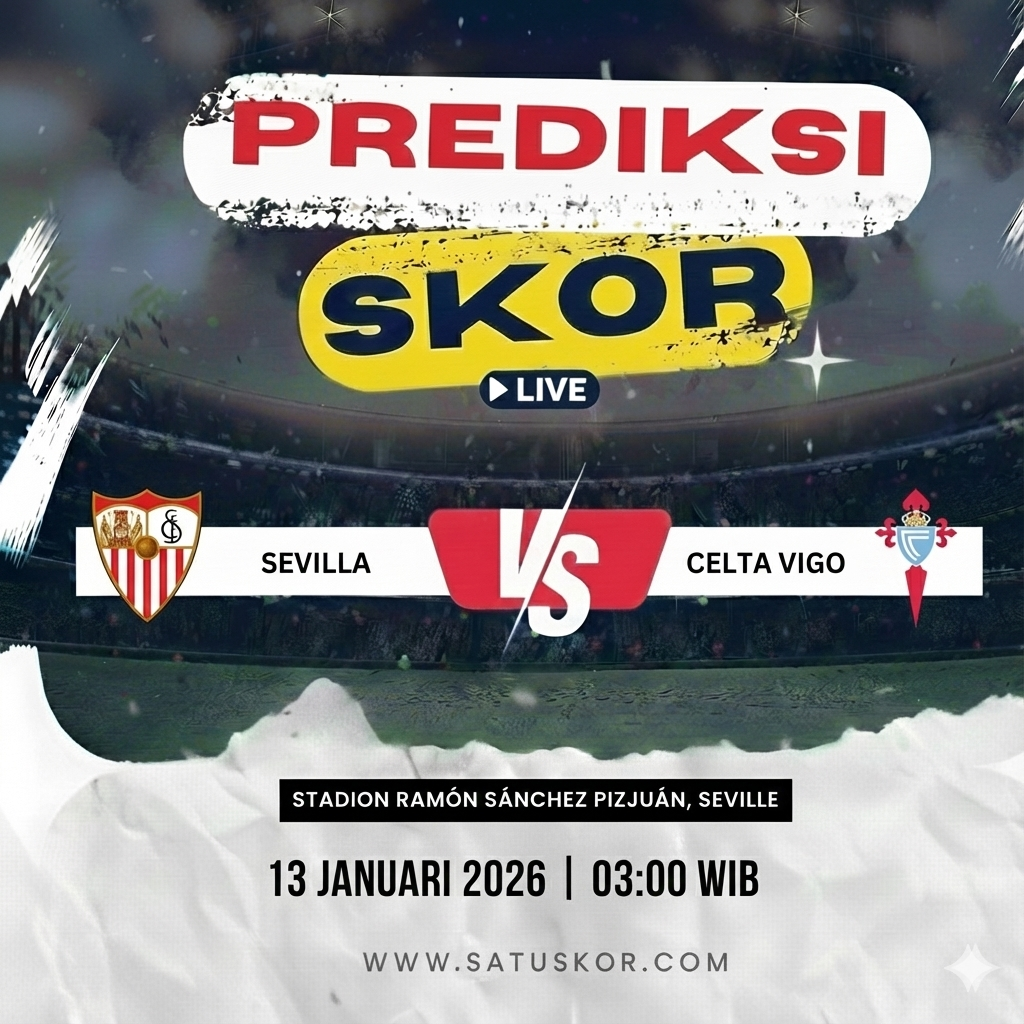 Satuskor.com – Prediksi pertandingan menarik akan tersaji pada Selasa, 13 Januari 2026, saat Sevilla vs Celta Vigo dalam lanjutan kompetisi La Liga 2025/2026. Laga ini akan berlangsung di Stadion Ramón Sánchez Pizjuán pada pukul 03:00 WIB dan disiarkan melalui beIN Sports serta platform streaming resmi.